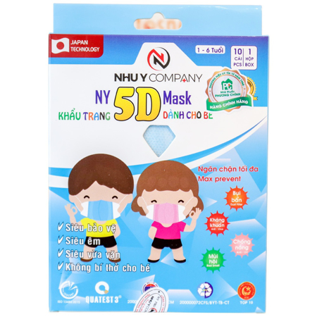 Khẩu trang y tế trẻ em Như Ý 5D kháng khuẩn, mẫu hoạt hình